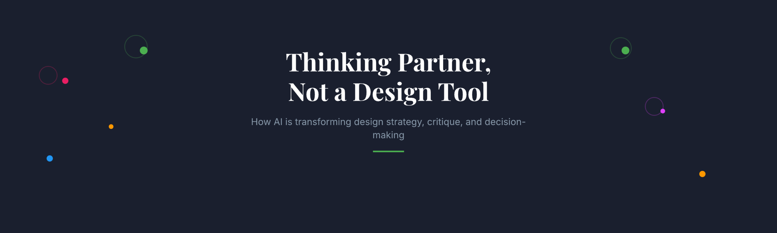 The most consequential change in how design teams use AI isn’t about generating mockups faster. It’s about thinking better. Across every major design publication and industry survey from 2024 to 2026, a clear consensus has emerged: AI’s greatest value to designers lies in ideation, critique, research synthesis, and strategic reasoning, not in producing visual assets. The data backs this up decisively. Foundation Capital’s 2025 survey of 400+ designers found that 84% use AI during exploration phases (research, ideation, strategy) versus just 39% during delivery. Figma’s own research shows only 33% of designers use AI to generate design assets, while 40% use it for data analysis and 38% for desk research. The tools haven’t caught up to the hype. Nielsen Norman Group’s May 2025 review found AI design tools still produce generic results with poor information hierarchy. But the thinking-partner use case is already delivering real returns. For design leads managing cross-functional teams in fintech and enterprise SaaS, this reframing isn’t academic. It changes how you staff projects, run critiques, synthesize research, and communicate with stakeholders.